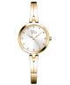 Zegarek damski Pierre Ricaud Classic P21084.1143Q to klasyczny model w złotej tonacji, który łączy elegancję z prostotą formy. Koperta o średnicy 27 mm oraz bransoleta zostały wykonane ze stali szlachetnej, co nadaje konstrukcji trwałość i jednolity wygląd. Na tarczy umieszczono subtelne cyrkonie, które pełnią funkcję ozdobnych indeksów, podkreślając kobiecy charakter modelu. Wewnątrz pracuje mechanizm kwarcowy Miyota 2035. Całość uzupełnia szkiełko mineralne, które chroni powierzchnię tarczy w codziennym użytkowaniu. Wodoszczelność na poziomie 30 metrów zabezpiecza zegarek przed niewielkimi zachlapaniami, np. podczas mycia rąk.