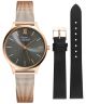 Zegarek dla kobiet Pierre Ricaud Fashion SET P22045.9167Q-SET działa na bazie japońskiego mechanizmu kwarcowego Citizen Miyota 2035. Koperta, która ma kolor różowego złota, została wykonana ze stali szlachetnej pokrytej warstwą PVD i połączona z wygodną bransoletą mesh, także w tym samym kolorze. Szarą tarczę ozdobiono efektem słonecznym i zabezpieczono szkłem mineralnym. W zestawie znajduje się także dodatkowy pasek.