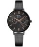Zegarek damski Pierre Ricaud Multifunction P22110.B154QF wyróżnia się spójną, minimalistyczną stylistyką opartą na czarnej kopercie ze stali szlachetnej i dopasowanej bransolecie mesh. Czarna tarcza została ozdobiona subtelnym giloszowaniem, które nadaje jej eleganckiej struktury. Model wyposażono w datownik dni miesiąca oraz dni tygodnia, co zwiększa jego funkcjonalność w codziennym użytkowaniu. Za działanie odpowiada kwarcowy mechanizm Seiko Epson VX36, a tarczę chroni szkło mineralne. Wodoszczelność 30 metrów zapewnia ochronę przed niewielkimi zachlapaniami, dzięki czemu zegarek świetnie sprawdza się na co dzień.