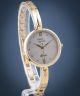 Pierre Ricaud Classic P23003.1177Q to elegancki zegarek damski o złoto-szarej kolorystyce. Model cechuje się odpornością na małe zachlapania, np. podczas mycia rąk. Kwarcowy, japoński mechanizm Citizen Miyota GL30 odmierza czas. Cyferblat został ozdobiony ćwiekami oraz szlifem słonecznym, który nadaje mu głębi. Na urządzenie składają się koperta oraz bransoleta wykonane ze stali szlachetnej.
