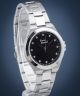 Pierre Ricaud Fashion P23009.5144Q jest subtelnym, damskim zegarkiem w srebrnym odcieniu. Okrągła koperta jest połączona z elegancką bransoletą o szerokości 18 mm. Szkiełko mineralne zabezpiecza czarną tarczę przed uszkodzeniami zewnętrznymi. Co więcej, cyferblat został udekorowany kryształkami, dzięki czemu model przyciąga wzrok nie tylko właścicielki.
