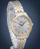 Pierre Ricaud Classic P23010.2113Q to damski, srebrno-złoty zegarek. Tarcza z trzema kryształkami została zabezpieczona szkłem mineralnym. Model pracuje w oparciu o japoński mechanizm kwarcowy Citizen Miyota 2035. Wodoszczelność oszacowano na poziomie 3 ATM.