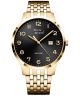 Pierre Ricaud Classic P60056.1124Q to męski zegarek o eleganckim połączeniu złotej koperty i bransolety ze stali szlachetnej z kontrastową czarną tarczą. Model działa na mechanizmie kwarcowym Citizen Miyota GM21 i został wyposażony w szafirowe szkło. Wodoszczelność na poziomie 50 metrów chroni zegarek przed deszczem, myciem rąk czy przypadkowym zachlapaniem, ale nie jest on przystosowany do pływania.