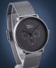 Zegarek męski Pierre Ricaud Multifunction P97169.S116QF opiera swoje działanie o mechanizm kwarcowy Seiko Epson VX3J. Szarą tarczę wyposażono w sub-tarcze datowników dni miesiąca i tygodnia oraz czasu dobowego. Koperta ze stali szlachetnej połączona jest z komfortowo układającą się na nadgarstku, meshową bransoletą.