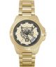 Plein Sport Touchdown PSFBA1123 to męski zegarek kwarcowy, który do działania napędza mechanizm Seiko VJ52B. Na ten utrzymany w złotej kolorystyce model składają się koperta i bransoleta wykonane ze stali szlachetnej, giloszowana tarcza z motywem tygrysa oraz chroniące cyferblat szkło mineralne. Dodatkowym udogodnieniem produktu jest datownik wskazujący aktualny dzień miesiąca. Wodoszczelność zegarka liczy 50 metrów.