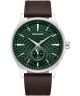 Zegarek męski Police Jet Urban PEWGF0093601 to model o nowoczesnym, wyrazistym wyglądzie. Srebrna koperta ze stali szlachetnej została wykończona polerowaną powierzchnią, a całość uzupełnia brązowy skórzany pasek, który zapewnia komfort noszenia. Zielona tarcza wyróżnia się nietypową kolorystyką, oferując jednocześnie czytelny układ wskazań. Za działanie zegarka odpowiada mechanizm kwarcowy VH60, natomiast mineralne szkło pełni funkcję ochronną dla tarczy podczas codziennego użytkowania. Wodoszczelność 50 metrów zapewnia odporność na kontakt z wodą podczas mycia rąk, opadów deszczu lub krótkotrwałego zanurzenia, jednak model nie jest przeznaczony do pływania.