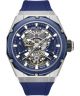 Zegarek męski Police Dayton Skeleton Automatic PEWGR0082304 to automatyczny model z mechanizmem JX-2804, który jest widoczny przez tarczę typu skeleton. Koperta wykonana jest ze stali szlachetnej w srebrnym kolorze. Transparentna tarcza oraz niebieski silikonowy pasek tworzą nowoczesny design. Model wyposażono w mineralne szkło i wodoszczelność 50 metrów, która chroni zegarek przed zachlapaniami.