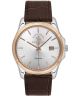 Santa Barbara Noble SB.1.10535-3 to elegancki męski zegarek zestawiający stalową kopertę w srebrno-złotej kolorystyce z brązowym paskiem skórzanym. Model działa na mechanizmie kwarcowym, a tarczę zabezpiecza szkło szafirowe, cenione ze względu na wysoką odporność na zarysowania. Szerokość koperty wynosząca 41 mm nadaje zegarkowi klasyczne proporcje, odpowiednie do codziennych i półformalnych stylizacji. Wodoszczelność na poziomie 50 metrów chroni model przed zachlapaniami oraz umożliwia krótki kontakt z wodą.