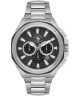 Zegarek męski Santa Barbara Prive SB.1.10539-1 to model dla mężczyzn, którzy oczekują rozbudowanej funkcjonalności. Koperta oraz bransoleta ze stali szlachetnej w kolorze srebrnym tworzą spójną, wyrazistą konstrukcję, która dobrze układa się na nadgarstku. Czarna tarcza została wyposażona w datownik dnia miesiąca w okienku oraz datownik dnia tygodnia w postaci subtarczy, co ułatwia kontrolę bieżącej daty. Funkcja podwójnego czasu z formatem 12/24 h pozwala na jednoczesne śledzenie drugiej strefy czasowej. Bezel ze skalą minut podkreśla sportowy charakter modelu. Za działanie zegarka odpowiada mechanizm kwarcowy Miyota JP25. Za ochronę tarczy odpowiada szkło mineralne. Wodoszczelność na poziomie 5 ATM oznacza odporność na zachlapania, w tym krótkotrwałe zanurzenie w wodzie czy intensywny deszcz.