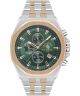 Zegarek męski Santa Barbara Luxury SB.1.10546-4 to model z mechanizmem kwarcowym, który łączy klasyczny układ wskazań z funkcją podwójnego czasu w formacie 12/24 godzin, umożliwiając jednoczesne kontrolowanie drugiej strefy czasowej. Datownik dni miesiąca w okienku oraz wskazanie dni tygodnia na sub-tarczy porządkują codzienny harmonogram i zwiększają funkcjonalność tarczy. Koperta ze stali szlachetnej w kolorze srebrno-złotym została zestawiona z bransoletą w tej samej kolorystyce, tworząc spójną, dwutonową kompozycję, którą uzupełnia zielona tarcza. Za ochronę tarczy odpowiada szkło mineralne. Szerokość koperty 45 mm nadaje konstrukcji wyrazistą obecność na nadgarstku. Wodoszczelność na poziomie 50 metrów oznacza odporność na zachlapania, intensywny deszcz oraz krótkotrwały kontakt z wodą.