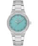 Zegarek damski Santa Barbara Unique SB.1.10552-1 to model z mechanizmem kwarcowym, zaprojektowany w kompaktowej kopercie o szerokości 35 mm. Srebrna koperta ze stali szlachetnej oraz bransoleta w tym samym kolorze tworzą harmonijną bazę dla turkusowej tarczy o fakturowanej powierzchni. Tarcza została uzupełniona kryształkami i ozdobnymi indeksami, które stanowią wyraźny element stylistyczny i nadają całości bardziej wyrazisty wygląd. Za ochronę tarczy odpowiada szkło mineralne. Wodoszczelność na poziomie 50 metrów pozwala na bezpieczne użytkowanie zegarka w przypadku zachlapań oraz krótkotrwałego kontaktu z wodą.