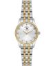 Zegarek damski Santa Barbara Unique SB.1.10649-4 to elegancki model utrzymany w srebrno-złotej kolorystyce. Koperta o szerokości 27 mm została wykonana ze stali szlachetnej i pokryta częściową powłoką IP, która nadaje jej jednolity i estetyczny wygląd. Bransoleta w tym samym wykończeniu tworzy spójną całość z kopertą. Szara tarcza została ozdobiona 12 kryształami, pełniącymi rolę indeksów. Zegarek działa na mechanizmie kwarcowym Seiko TMI VJ21C1, odpowiednim do codziennego użytkowania. Tarczę chroni szkło mineralne, a wodoszczelność 50 metrów pozwala na noszenie modelu w sytuacjach kontaktu z wodą, takich jak niewielkie zachlapania czy mycie rąk.