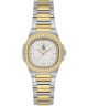 Zegarek damski Santa Barbara Unique SB.1.10658-3 to elegancki model utrzymany w dwukolorowym, srebrno-złotym wykończeniu. Koperta ze stali szlachetnej o szerokości 26 mm oraz dopasowana bransoleta zostały pokryte powłoką IP, która nadaje całości jednolity i estetyczny wygląd. Bezel ozdobiono kryształkami, dodając zegarkowi subtelnego, biżuteryjnego akcentu. Mineralne szkło chroni tarczę w codziennych warunkach, a za działanie modelu odpowiada mechanizm kwarcowy Seiko TMI VJ21C1. Wodoszczelność 50 metrów pozwala na noszenie zegarka przy niewielkich zachlapaniach lub krótkotrwałym kontakcie z wodą.