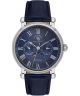 Zegarek męski Santa Barbara Legend SB.4.10033-3 to elegancka propozycja o klasycznym, stonowanym wyrazie. Koperta ze stali szlachetnej o szerokości 43 mm została zestawiona z granatowym skórzanym paskiem, co nadaje modelowi bardziej nowoczesnego charakteru. Na tarczy znajdują się trzy funkcje: wskaźnik faz księżyca, datownik dni miesiąca oraz datownik dni tygodnia, tworzące praktyczne zestawienie przydatne w codziennym użytkowaniu. Mechanizm kwarcowy Miyota 6P20 odpowiada za działanie zegarka, a szkło mineralne chroni tarczę. Wodoszczelność 50 metrów zapewnia odporność na zachlapania, dzięki czemu zegarek sprawdza się podczas typowych aktywności dnia codziennego.