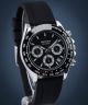 Zegarek męski Sekonda Circuit Chronograph 30199 to funkcjonalny model wyposażony w datownik dni miesiąca, czas dobowy, chronograf, tachymetr i powłokę luminescencyjną. Czarną tarczę zdobi szlif słoneczny. Na kopercie z mosiądzu w kolorze srebrnym umieszczono czarny bezel. Całość uzupełnia czarny, silikonowy pasek. Model do pracy napędzany jest przez mechanizm kwarcowy.