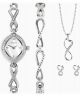 Sekonda Infinity Gift Set 49056 to elegancki damski zegarek w srebrnym kolorze, który wyróżnia się kopertą zdobioną kryształkami oraz perłową tarczą z subtelnym kryształkiem na godzinie 12. Stalowa bransoleta oraz mineralne szkło zapewniają trwałość i komfort noszenia, a precyzyjny japoński mechanizm kwarcowy gwarantuje precyzyjne działanie. W zestawie znajdują się również naszyjnik, bransoletka i kolczyki, wszystkie ozdobione symbolem nieskończoności. To idealny prezent, który łączy funkcjonalność z elegancją.