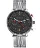 Zegarek męski Sternglas Hamburg Chronograph Limited Edition S01-HCN03-ME08 to limitowany zegarek do 1999 egzemplarzy. Model nawiązuje do morskiego dziedzictwa Hamburga oraz wyspy Neuwerk – zakręcany, grawerowany dekiel przedstawia historyczną latarnię morską oraz charakterystyczny wóz, podkreślając regionalną inspirację projektu. Koperta ze stali szlachetnej 316L w srebrnym kolorze została zestawiona z czarną, satynowaną tarczą z datownikiem dni miesiąca w okienku na godzinie 6. Za działanie odpowiada hybrydowy mechanizm Seiko VK64, a funkcja chronografu umożliwia pomiar krótkich odcinków czasu w codziennym użytkowaniu. Za ochronę tarczy odpowiada wypukłe szkło szafirowe z powłoką antyrefleksyjną, poprawiającą czytelność wskazań, natomiast Super-LumiNova wspiera odczyt w słabszym oświetleniu. Model został wyposażony w srebrną bransoletę ze stali szlachetnej 316L o szerokości 20 mm. Wodoszczelność na poziomie 50 metrów oznacza odporność na zachlapania, intensywny deszcz oraz krótkotrwały kontakt z wodą.