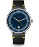 Zegarek męski Sternglas Hamburg Edition 1911 S01-HHT06-VI22 został stworzony jako odniesienie do Starego Tunelu pod Łabą, otwartego w 1911 roku. Koperta ze stali szlachetnej 316L o średnicy 42 mm i grubości 8 mm mieści mechanizm kwarcowy Miyota GR12. Granatowa tarcza z satynowym wykończeniem i jasnoniebieskim pierścieniem została uzupełniona warstwą Super-LumiNova, która poprawia czytelność przy słabym świetle. Zastosowano podwójnie wypukłe szkło szafirowe z powłoką antyrefleksyjną. Na deklu, mocowanym na cztery śruby, znajduje się grawer inspirowany tunelem, który podkreśla charakter tej edycji. Całość dopełnia pasek skórzany w kolorze czarnym. Model posiada wodoszczelność na poziomie 50 metrów, która chroni przed zachlapaniami.