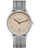 Minimalistyczny design i smukłe proporcje wyróżniają zegarek Sternglas Naos Bauhaus S01-NA54-ME08, zaprojektowany z myślą o osobach ceniących prostotę i czytelność. Stalowa koperta 316L w połączeniu z dopasowaną bransoletą prezentuje się nowocześnie i estetycznie na nadgarstku. Szara tarcza została uzupełniona o datownik dnia miesiąca, zachowując przejrzysty układ wskazań. Cyferblat osłania wypukłe szafirowe szkiełko z antyrefleksem, które poprawia komfort odczytu. Zegarek działa w oparciu o mechanizm kwarcowy Miyota GR12, a wodoszczelność na poziomie 50 metrów pozwala na bezpieczne użytkowanie produktu podczas kąpieli.
