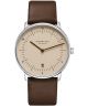Zegarek męski Sternglas Naos Bauhaus S01-NA54-PR04 to minimalistyczny, elegancki model o klasycznym charakterze i niezwykle cienkiej kopercie. W kopercie ze stali szlachetnej 316L zamknięto mechanizm kwarcowy Miyota GR12, a całość ma grubość zaledwie 6,00 mm - to sprawia, że zegarek jest wyjątkowo smukły i świetnie układa się na nadgarstku. Beżowa tarcza przywodzi na myśl design w stylu Bauhaus, a wypukłe, szafirowe szkło z powłoką antyrefleksyjną zapewnia ochronę cyferblatu i dobrą czytelność. Brązowy pasek skórzany dopełnia całości, podkreślając elegancki charakter zegarka. Wodoszczelność na poziomie 50 metrów oznacza, że model zniesie kontakt z wodą przy myciu rąk, deszczu czy przypadkowym zachlapaniu - nie jest przeznaczony do pływania.