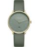 Model S01-NDF18-KL09 należy do bestsellerowej oferty niemieckich zegarków od hamburskiej marki Sternglas. Praca zegarka damskiego Sternglas Naos XS Edition Flora S01-NDF18-KL09 bazuje na szwajcarskim mechanizmie kwarcowym Ronda 784 z datownikiem. Minimalistyczny szyk podkreśla skórzany pasek cielęcy i prosta tarcza - obie części w szarozielonym naturalnym odcieniu. Całość dopełnia elegancka złota koperta z polerowanej stali szlachetnej 316L z PVD. Na jej deklu wygrawerowano subtelny kwiatowy motyw.