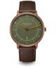 Zegarek męski Sternglas Naos XL Edition 1905 S01-NXT35-MO27 to propozycja dla mężczyzn preferujących klasyczny wygląd w większym formacie. Kolekcja Edition 1905 powstała jako hołd dla hamburskiej architektury przemysłowej, a w tym modelu została oddana poprzez minimalistyczne wzornictwo i wyraziste detale. Tarcza w kolorze zielonym ma satynowane wykończenie, a wskazówki w brązowym odcieniu z pomarańczowym akcentem podkreślają jej czytelność. Koperta wykonana jest ze stali szlachetnej 316L i wykończona brązową powłoką PVD, którą uzupełnia elegancki pasek skórzany w tym samym kolorze. Całość chroni wypukłe szkło szafirowe z powłoką antyrefleksyjną. Na spodzie znajduje się 4-krotnie przykręcany dekiel z grawerem edycji „1905”. Wodoszczelność zegarka wynosi 50 metrów - oznacza to, że model jest odporny na zachlapania.