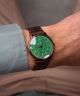 Sternglas Lumatik Automatic Edition Bronze S02 LMR19 VI17 to męski zegarek, który łączy elegancję z funkcjonalnością. Jego automatyczny mechanizm umieszczony jest w kopercie wykonanej ze stali szlachetnej w kolorze różowego złota. Tarcza w pięknym zielonym odcieniu jest przykryta szkiełkiem szafirowym z antyrefleksem, co zapewnia czytelność w różnych warunkach oświetleniowych. Szerokość koperty wynosząca 38 mm nadaje mu subtelny charakter. Skórzany brązowy pasek doskonale współgra z całością, zapewniając wygodę noszenia. Zegarek jest wodoszczelny do 50 metrów, co sprawia, że jest odporny na zachlapania. To świetny wybór dla mężczyzn, którzy cenią sobie styl i solidność w jednym.