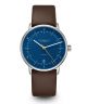 Zegarek męski Sternglas Naos Automatik S02-NA45-PR04 to model, który zdobył nagrodę IF Design Award 2020. Posiada automatyczny mechanizm Miyota 8215 z 42 godzinną rezerwą chodu. Koperta wykonana jest ze stali szlachetnej w kolorze srebrnym, a jej szerokość wynosi 38 mm, co nadaje zegarkowi subtelny, ale solidny wygląd. Niebieska tarcza jest przykryta szkiełkiem szafirowym z antyrefleksem, które jest trudne do zarysowania. Zegarek jest wodoszczelny do 50 metrów, co sprawia, że jest odporny na drobne zachlapania. Brązowy pasek skórzany dodaje mu charakteru i komfortu noszenia. Dodatkowym atutem jest obecność dekla ze szkłem szafirowym. Gwarancja na ten model to 2 lata.