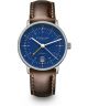 Sternglas Naos Pro GMT Automatik S02-NG06-BR03 to męski zegarek automatyczny ze wskazówką GMT, która umożliwia śledzenie drugiej strefy czasowej – idealne rozwiązanie dla podróżujących lub pracujących w różnych lokalizacjach. Model wyposażono w mechanizm Miyota 9075 z 42-godzinną rezerwą chodu i 24 kamieniami, a niebieską tarczę z datownikiem chroni szafirowe szkło z powłoką antyrefleksyjną. Brązowy pasek ze skóry naturalnej i stalowa koperta 316L tworzą klasyczną i funkcjonalną całość. Zegarek ma również warstwę Super-LumiNova dla czytelności po zmroku oraz wodoszczelność 50 metrów – odpowiednią na co dzień, np. podczas mycia rąk.