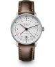 Sternglas Naos Pro GMT Automatik S02-NG10-BR03 wyróżnia się minimalistycznym designem i dodatkowymi funkcjami, które zwiększają jego użyteczność. Na białej tarczy umieszczono datownik oraz wskazówkę GMT, a indeksy i wskazówki pokryto powłoką Super-LumiNova. Model działa na japońskim mechanizmie Miyota 9075 z automatycznym naciągiem, oferując 42-godzinną rezerwę chodu. Koperta wykonana ze stali szlachetnej 316L łączy się z naturalnym brązowym paskiem skórzanym. Wodoszczelność do 50 m pozwala na bezpieczne użytkowanie zegarka w warunkach codziennych.