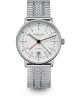 Sternglas Naos Pro GMT Automatik S02-NG10-ME08 to propozycja dla mężczyzn, którzy szukają funkcjonalnego zegarka o klasycznym wyglądzie i nowoczesnym wnętrzu. Na białej tarczy umieszczono datownik oraz wskazówkę GMT do śledzenia drugiej strefy czasowej, a całość zabezpiecza szafirowe szkło z powłoką antyrefleksyjną. Zegarek napędzany jest przez mechanizm automatyczny Miyota 9075 (24 kamienie, 42-godzinna rezerwa chodu) i połączony ze stalową bransoletą w kolorze srebrnym. Wodoszczelność 50 m pozwala na użytkowanie w codziennych sytuacjach, w tym podczas mycia rąk czy opadów.