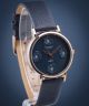 Zegarek damski Strand by Obaku Flower S733LXVLVL posiada kopertę ze stali szlachetnej i mosiądzu w kolorze różowego złota. Niebieską tarczę zdobią kryształki, kwiatuszki i szlif słoneczny. Serce modelu stanowi mechanizm kwarcowy Miyota 2035. Całość uzupełnia skórzany pasek w kolorze niebieskim.