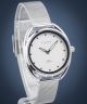 Zegarek damski Strand by Obaku Marinha S734LXCIMC-GF do działania napędza japoński mechanizm kwarcowy Miyota 2035 z funkcją stop sekunda. Kopertę o wysokości 40 mm ze stali szlachetnej połączono z bransoletą z tego samego tworzywa. Białą tarczę uzupełniają srebrne indeksy punktowe oraz wskazówki. Zabezpiecza ją szkiełko mineralne.