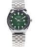 Zegarek męski Strand by Obaku Classic S754GDCESC-DTO to propozycja utrzymana w klasycznej stylistyce, bazującej na srebrnej kopercie i dopasowanej bransolecie ze stali szlachetnej. Zielona tarcza przyciąga uwagę swoim wyrazistym kolorem, a powłoka luminescencyjna na wskazówkach ułatwia odczyt czasu w słabszym oświetleniu. Model wyposażono w datownik dni miesiąca, co zwiększa jego praktyczność w codziennym użytkowaniu. Za pracę zegarka odpowiada mechanizm kwarcowy, a szkło mineralne chroni tarczę przed uszkodzeniem. Dzięki wodoszczelności 30 metrów zegarek jest odporny na niewielkie zachlapania.
