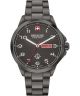 Zegarek męski Swiss Military Hanowa Puma SMWGH2100341 to model oparty na solidnej konstrukcji. Koperta ze stali szlachetnej w czarnym kolorze ma szerokość 45 mm i grubość 11 mm, a całość została zestawiona z czarną bransoletą stalową, tworząc spójną, jednolitą formę. Szara tarcza o fakturowanej powierzchni wyposażona jest w podwójny datownik – dni miesiąca oraz dni tygodnia – umieszczony w osobnych okienkach. Za działanie zegarka odpowiada mechanizm kwarcowy Swiss Made Ronda 517. Tarcza chroniona jest wysokiej jakości szkłem szafirowym. Wodoszczelność na poziomie 100 metrów pozwala na pływanie powierzchniowe oraz rekreacyjny kontakt z wodą.