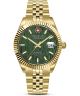 Swiss Military Hanowa Master Diligenter Automatic SMWGL0005412 to męski zegarek automatyczny z mechanizmem Soprod P024 Swiss Made i zakręcaną koronką. Model przyciąga uwagę zieloną tarczą zestawioną ze złotą kopertą i bransoletą wykonaną ze stali szlachetnej. Tarcza osłonięta jest szkłem szafirowym, a wodoszczelność na poziomie 100 metrów pozwala na bezpieczne korzystanie z zegarka również podczas pływania.
