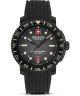 Swiss Military Hanowa Black Marlin SMWGN0001730 to sportowy model na czarnym pasku silikonowym, z masywną kopertą w czarnym kolorze i dopasowaną tarczą. Za działanie zegarka odpowiada mechanizm kwarcowy Ronda 515 Swiss Made, a szkło szafirowe chroni go przed codziennymi zarysowaniami. Wodoszczelność na poziomie 200 metrów pozwala na swobodne użytkowanie podczas pływania.