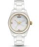 Swiss Military Hanowa Swiss Recruit Lady Diamonds Ceramic SMWLG0005102 to zegarek dla kobiet, które cenią elegancję i wyrafinowanie w klasycznym wydaniu. Model ma białą tarczę wykonaną z masy perłowej, na której funkcję oznaczeń godzin pełnią diamenty. Koperta i bransoleta ze spieku ceramicznego w złotym kolorze nadają całości ponadczasowy charakter. Za działanie zegarka odpowiada mechanizm kwarcowy Swiss Made Ronda 763E, a tarczę chroni szafirowe szkło. Wodoszczelność na poziomie 50 metrów chroni przed niewielkimi zachlapaniami.