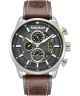 Męski model Timberland Calahan TDWGF0095402 wyróżnia się dużą, srebrną kopertą wykonaną ze stali szlachetnej, której szerokość wynosi 46 mm. Zastosowano tu połączenie wykończenia polerowanego i szczotkowanego, a srebrny bezel dodaje zegarkowi eleganckiego, ale wciąż męskiego wyglądu. Czarny cyferblat osłonięto mineralnym szkiełkiem chroniącym go przed wpływem czynników zewnętrznych. Zegarek wyposażono w datownik dnia miesiąca, datownik dnia tygodnia oraz podwójny czas, co zwiększa jego funkcjonalność. Urządzenie działa w oparciu o mechanizm kwarcowy JP15. Brązowy, skórzany pasek o szerokości 24 mm zapewnia komfort noszenia. Wodoszczelność do 50 metrów pozwala na bezpieczne użytkowanie zegarka podczas kąpieli. Całość objęta jest 2-letnią gwarancją.