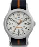 Timex Expedition North Sierra TW2V22800 to męski zegarek, który ze względu na stylowy design doskonale komponuje się z męskim outfitem. Koperta jest połączona z materiałowym paskiem w granatowym odcieniu, natomiast biała tarcza została pokryta szkiełkiem mineralnym. Udekorowany pomarańczowymi elementami produkt jest wyposażony w datownik dni miesiąca, czas 24-godzinny oraz podświetlenie Indiglo.