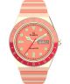 Panie ceniące sobie piękne dodatki powinny zwrócić uwagę na Timex Q Malibu TW2V38600. To szykowny model w modnym różowozłotym odcieniu. Kolor ten nawiązuje do niezwykłej pory dnia, jaką jest złota godzina. Różowy cyferblat uzupełniono o datowniki dnia miesiąca i tygodnia, a widoczne na nim indeksy pokryto świecącą w ciemności powłoką luminescencyjną.