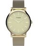 Zegarek damski Timex Trend Transcend TW2V92800 zachwyca złotą kolorystyką. Tarcza ozdobiona giloszem została zabezpieczona elastycznym szkiełkiem mineralnym. Wodoszczelność oceniono w klasie 3 ATM.
