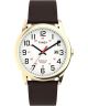 Zegarek męski Timex Easy Reader Classic TW2Y12700 łączy złotą kopertę z brązowym, skórzanym paskiem. Duże cyfry na jasnej tarczy podkreślają charakterystyczną dla serii Easy Reader czytelność. Za pracę zegarka odpowiada mechanizm kwarcowy, a mineralne szkło osłania tarczę. Wodoszczelność do 30 metrów oznacza odporność na drobne zachlapania, dzięki czemu zegarek sprawdzi się w codziennym użytkowaniu.