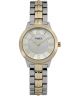 Zegarek damski Timex Main Street TW2Y38300 wyróżnia się subtelnym stylem i efektowną bransoletą bikolor. Koperta ma 30 mm średnicy, co sprawia, że zegarek prezentuje się elegancko na nadgarstku. Całość przykryto szkłem mineralnym, a za działanie modelu odpowiada mechanizm kwarcowy. Wodoszczelność na poziomie 30 metrów oznacza odporność na niewielkie zachlapania, dzięki czemu zegarek sprawdzi się w codziennych sytuacjach.