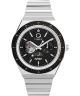 Zegarek męski Timex Q Vintage-Inspired NASA TW2Y56700 to współczesna interpretacja modelu inspirowanego stylistyką lat 70., przygotowana jako hołd dla misji Apollo 17. Srebrna koperta ze stali szlachetnej została zestawiona z bransoletą wykonaną z tego samego materiału. Czarna tarcza została wyposażona w wskaźnik faz księżyca, datownik dni miesiąca oraz dni tygodnia, a także liniowe indeksy godzin. Na pierścieniu umieszczono skalę tachymetryczną, która umożliwia odczyt prędkości na podstawie pomiaru czasu. Cyferblat pokrywa hesalitowe szkło o klasycznym wyglądzie. Za działanie modelu odpowiada kwarcowy mechanizm japoński. Zegarek posiada czarny bezel wykonany z aluminium. Wodoszczelność na poziomie 50 metrów pozwala korzystać z modelu podczas kąpieli pod prysznicem lub w wannie.