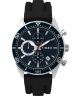 Zegarek męski Timex Trend Ridgefield Chronograph TW2Y62300 to propozycja dla mężczyzn, którzy cenią sportowy charakter i kontrastowe zestawienia kolorystyczne. Koperta ze stali szlachetnej w kolorze srebrnym o szczotkowanym i piaskowanym wykończeniu została zestawiona z czarnym bezelem oraz czarnym paskiem silikonowym, który dobrze leży na nadgarstku i podkreśla dynamiczny styl modelu. Czarna tarcza z liniowymi indeksami została wyposażona w datownik dnia miesiąca oraz wskazówki z powłoką luminescencyjną, co ułatwia odczyt w słabszym oświetleniu. Funkcja chronografu umożliwia odmierzanie wybranych przedziałów czasu podczas aktywności sportowych i codziennych zadań wymagających kontroli minut i sekund. Za działanie zegarka odpowiada japoński mechanizm kwarcowy. Za ochronę tarczy odpowiada szkło mineralne. Wodoszczelność na poziomie 5 ATM oznacza odporność na zachlapania, w tym krótkotrwałe zanurzenie w wodzie czy intensywny deszcz.