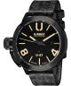 U-BOAT Classico U-47 47mm AB1 9160 to luksusowy zegarek dla mężczyzn, który utrzymano w czarnej kolorystyce. Koperta ze stali szlachetnej AISI 316L została pokryta czarną powłoką PVD, ponadto połączono ją z manufakturowym paskiem wycinanym laserowo z cielęcej skóry. Dzięki skrupulatnym technikom rzemieślniczym pasek został naturalnie postarzany. Całość uzupełnia tarcza udekorowana rubinem, która zawiera datownik dni miesiąca oraz beżową powłokę luminova. Model zabezpieczono szkiełkiem szafirowym z antyrefleksem.