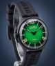 Czarno-zielony U-BOAT Darkmoon 40mm Green PVD Soleil 9503 to propozycja dla zwolenników designu na najwyższym poziomie. Wykonany z gumy wulkanicznej pasek został połączony z kopertą ze stali szlachetnej 316L, którą pokrywa powłoka PVD. Pod szkłem szafirowym umieszczono szlifowaną, polerowaną metodą soleil tarczę z pęcherzykiem powietrza. Powłoka Super-LumiNova na wskazówkach i indeksach to gwarancja wygodnego odczytu w ciemności. Całe wnętrze obudowy, łącznie z mechanizmem kwarcowym Ronda 762 Swiss Made, zostało zalane specjalnym olejem. Ulokowana po lewej stronie, zakręcana koronka oraz opatentowany system blokady dekla z funkcją szybkiej wymiany baterii to cechy charakterystyczne marki.