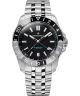 Zegarek męski Venezianico Nereide GMT Ceratung™ Automatic 4521500S to zaawansowany model nurkowy z funkcją GMT, zaprojektowany z myślą o pracy w wielu strefach czasowych. Za działanie zegarka odpowiada automatyczny mechanizm kaliber V3290, wyposażony w system antywstrząsowy Incabloc oraz rezerwę chodu wynoszącą 42 godziny. Zegarek posiada wskazówkę GMT oraz datownik dni miesiąca umieszczony w okienku. Charakterystycznym elementem konstrukcji jest dwukierunkowy bezel Ceratung™, wykonany z połączenia ceramiki i wolframu, wyposażony w skalę 24-godzinną oraz mechanizm 24 kliknięć odpowiadających pełnej dobie. Rozwiązanie to umożliwia jednoczesne śledzenie trzech stref czasowych dzięki połączeniu dwóch skal 24-godzinnych – na wkładce bezela oraz na tarczy. Czarna tarcza została zabezpieczona szkłem szafirowym z powłoką antyrefleksyjną, a indeksy liniowe i wskazówki pokryto masą BGW9 Super-LumiNova®. Koperta oraz bransoleta wykonane ze stali szlachetnej 316L tworzą spójną, solidną konstrukcję. Zakręcana koronka oraz zakręcany, grawerowany dekiel dopełniają całość. Wodoszczelność na poziomie 200 metrów umożliwia pływanie oraz użytkowanie zegarka podczas aktywności wodnych.
