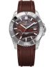 Zegarek męski Venezianico Nereide Chimera to limitowany model w liczbie 500 egzemplarzy, którego największym wyróżnikiem jest wielokolorowa tarcza z naturalnego kamienia Iron Tiger o nieregularnej strukturze i unikalnym rysunku. Srebrna koperta ze stali szlachetnej 316L o szerokości 42 mm została połączona z bordowym paskiem z gumy TPU o szerokości 22 mm. Jednokierunkowy pierścień ze skalą minut posiada wkładkę wykonaną z wolframu. Szkło szafirowe z antyrefleksem osłania cyferblat, na którym umieszczono datownik w formie okienka. Zakręcana koronka znajduje się po prawej stronie, a przeszklony dekiel umożliwia obserwację mechanizmu Sellita SW200-1 z 26 kamieniami i rezerwą chodu do 41 godzin, wyposażonego w funkcję stop sekundy oraz autorski rotor z dekoracją Côtes de Genève. Wodoszczelność na poziomie 200 metrów pozwala korzystać z zegarka podczas pływania i nurkowania bez akwalungu.